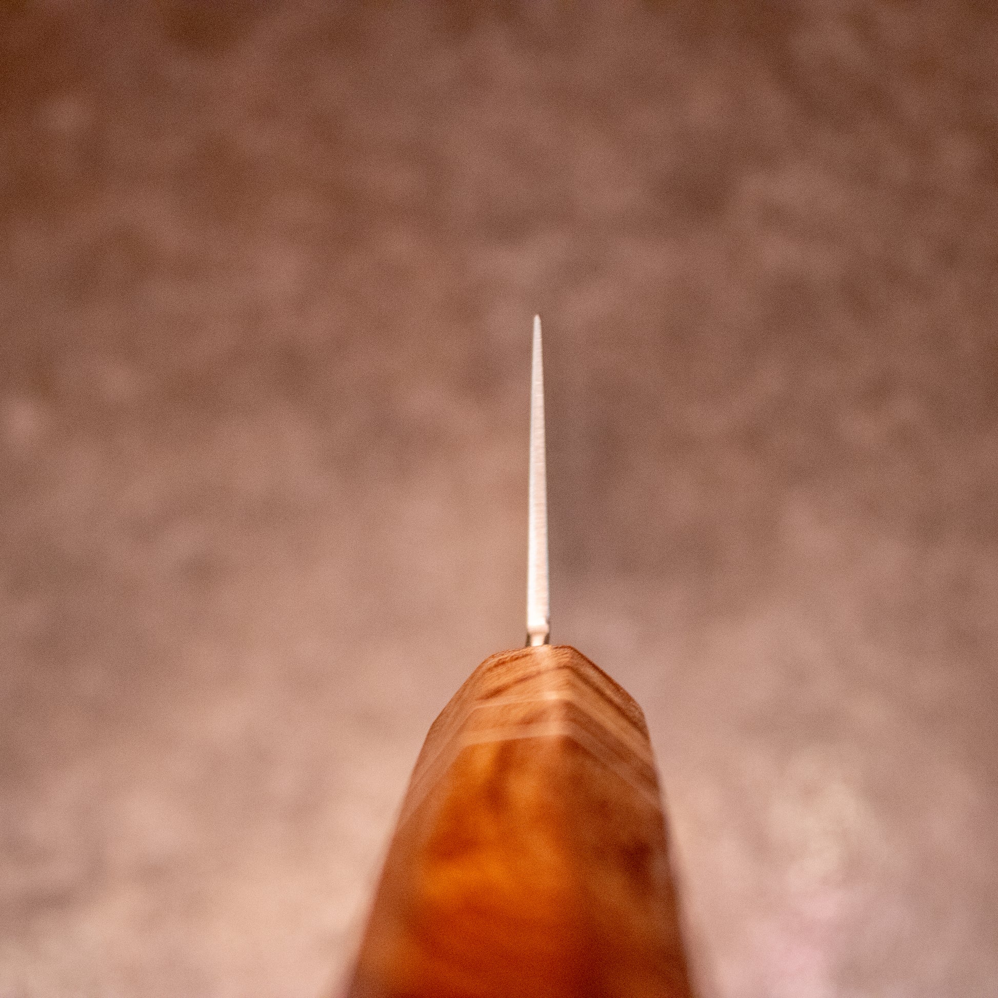 Dette knivsæt består af en 20 cm Gyuto og en Nakiri, begge håndlavet med fokus på skarphed, balance og holdbarhed.