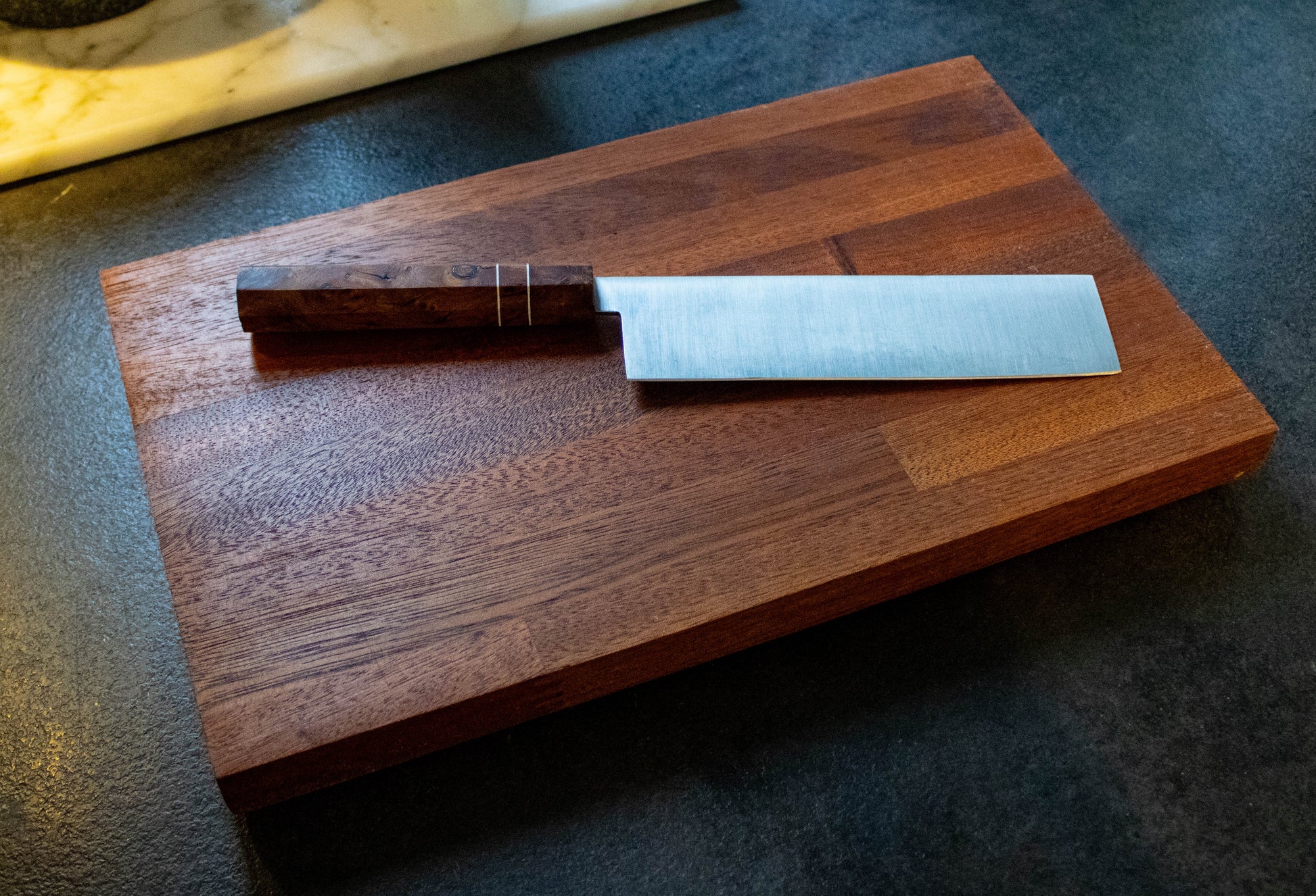 ette elegante skære- og serveringsbræt er fremstillet af stavlimet træ, hvilket giver en smuk, ensartet overflade og høj styrke. Brættet er designet til både madlavning og servering, perfekt til at hakke grøntsager, skære kød eller anrette tapas og ost.