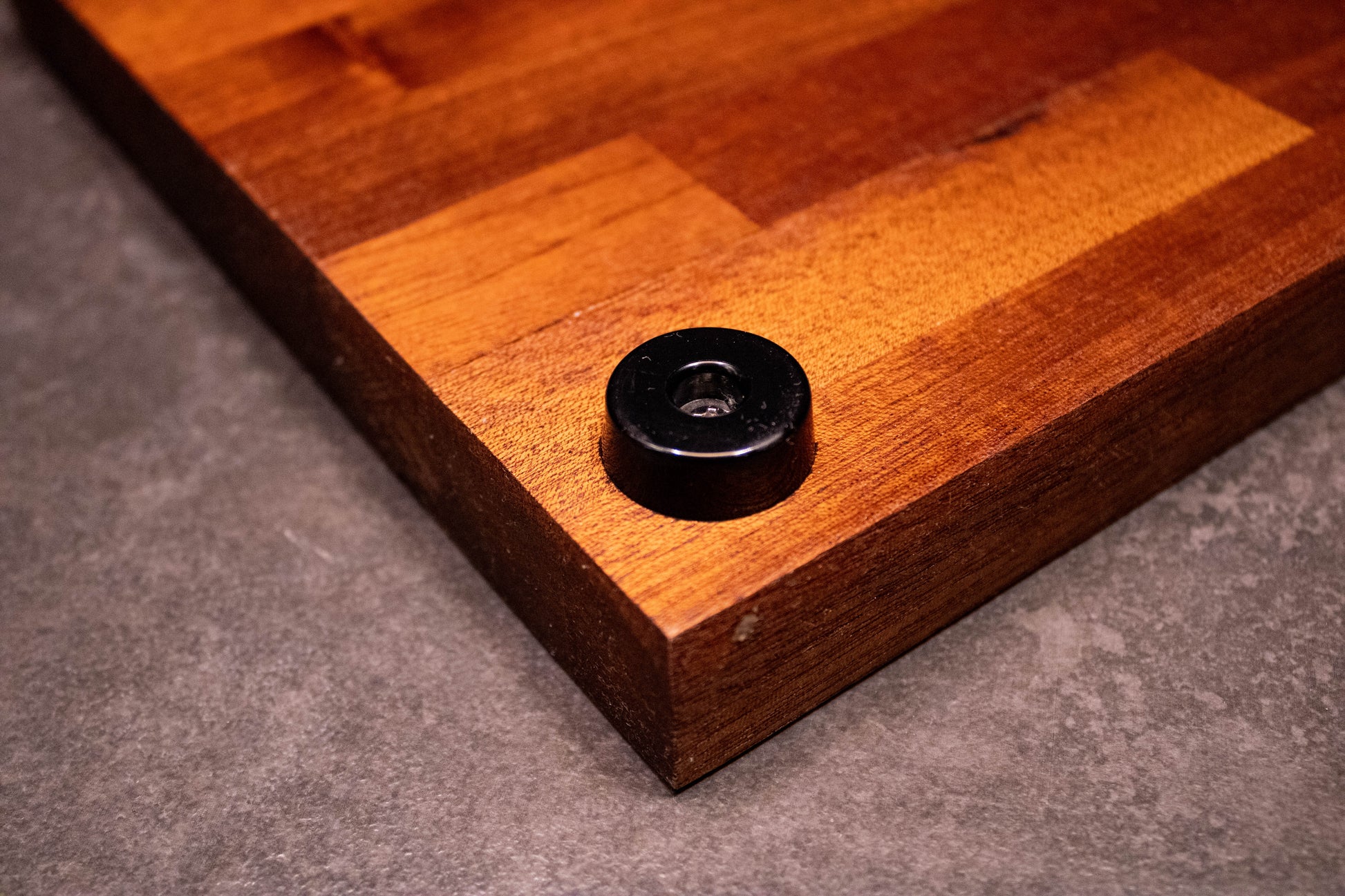For ekstra stabilitet er brættet udstyret med skridsikre gummifødder, der holder det sikkert på plads, selv under krævende køkkenarbejde. Den stavlimede konstruktion reducerer risikoen for vridning og revner, og træets naturlige varme giver et tidløst udtryk, der passer ind i ethvert køkken.