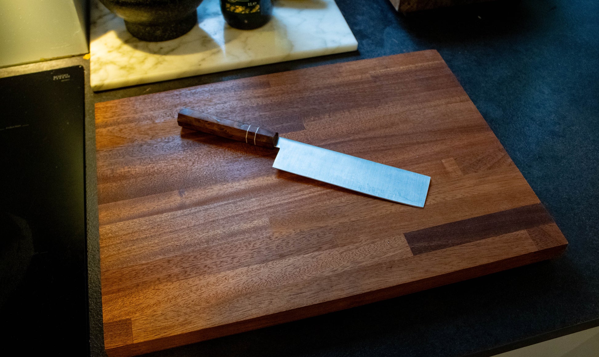 Dette elegante skære- og serveringsbræt er fremstillet af stavlimet træ, hvilket giver en smuk, ensartet overflade og høj styrke. Brættet er designet til både madlavning og servering, perfekt til at hakke grøntsager, skære kød eller anrette tapas og ost.